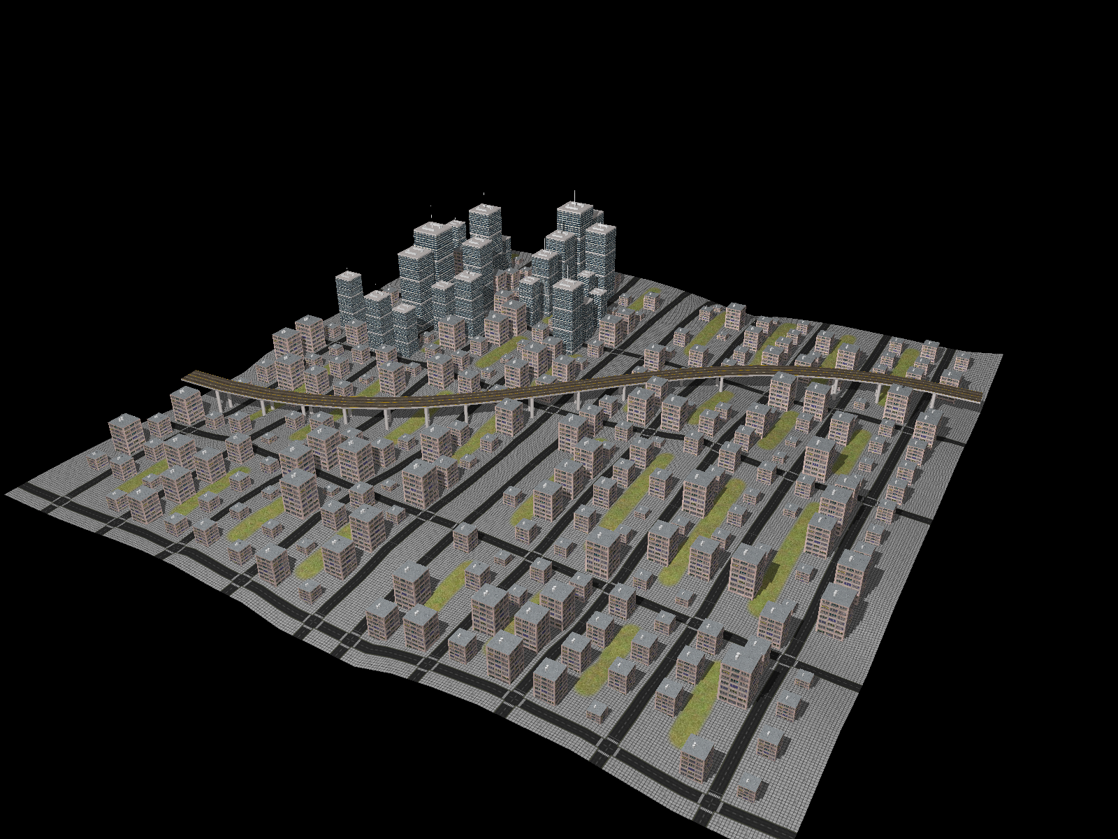 Pro následující práci si opět stáhněte zde potřebné materiály, abychom nezačínali úplně od nuly. V archivu jsou k dispozici model obytného domu, model mrakodrapu, textury pro ně a ještě textura povrchu města a textura pro dálnici.
