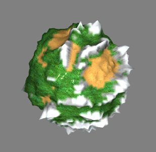 Parametr TexCoord ponechte beze změny. Aby mohla tato funkce generovat terén skutečně na jakémkoliv tvaru, tak místo prostorových souřadnic využívá souřadnice mapování povrchu. Pokud bychom tedy změnili mapování vrcholů v jedné vrstvě UV, můžeme zde pro generování terénu zvolit některou z ostatních UV vrstev. Ostatní parametry nastavte tak, aby nám vzniknul mírně zvlněný terén. Třeba následovně: