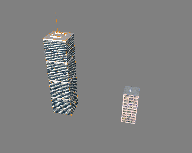 Použijte volbu Model - Import... a nalistujte modely Condo.obj a Skyscraper.obj (nutno importovat jednotlivě). Pozor: Až vás program vyzve zda importovat i materiály, tak zvolte NE. To z toho důvodu, že import materiálů by vždy přepsal paletu těch aktuálních včetně materiálu pro vygenerovaný terén, který jsme již nastavili. Materiály pro domy nastavíme ručně takto: